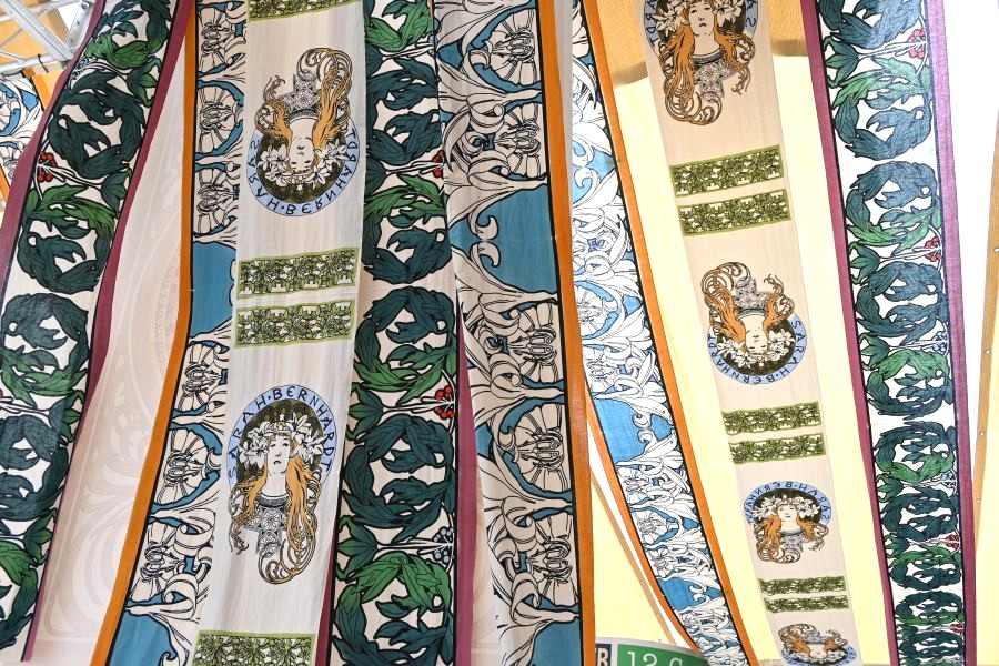 • ミュシャの特製手ぬぐいが素敵な万博での展示の様子(9月25日/大阪・関西万博 Lmaga.jp)