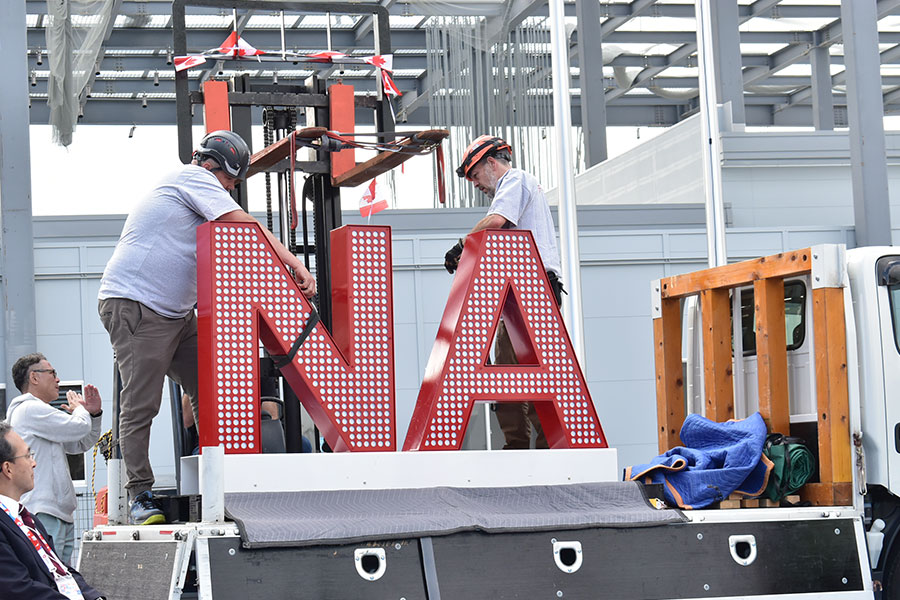• サインはカナダ館のフォトスポットとしても活躍、移設先の名取市にちなみ「NA」が一番先に搬送された(10月27日 Lmaga.jp撮影)