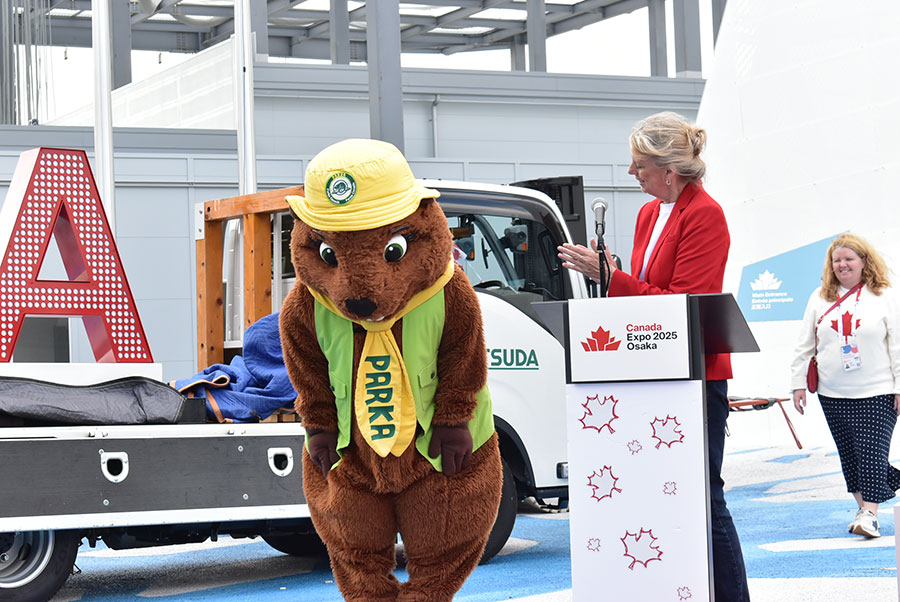 • カナダパビリオンの象徴「CANADA」サインが搬送される様子(10月27日 Lmaga.jp撮影)