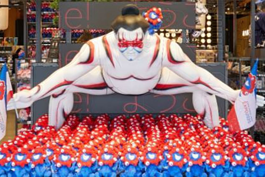 新たなストアは11月1日、5階イベントスペースにオープン。グッズの販売はもちろん、万博会場内オフィシャルストアで使用されていたた「相撲レスラー」や「ねぶた」、「提灯」などの装飾品や、1/50のスケールの大屋根リング、会場内オフィシャルストアで人気だった商品などを店内に展示するという。
