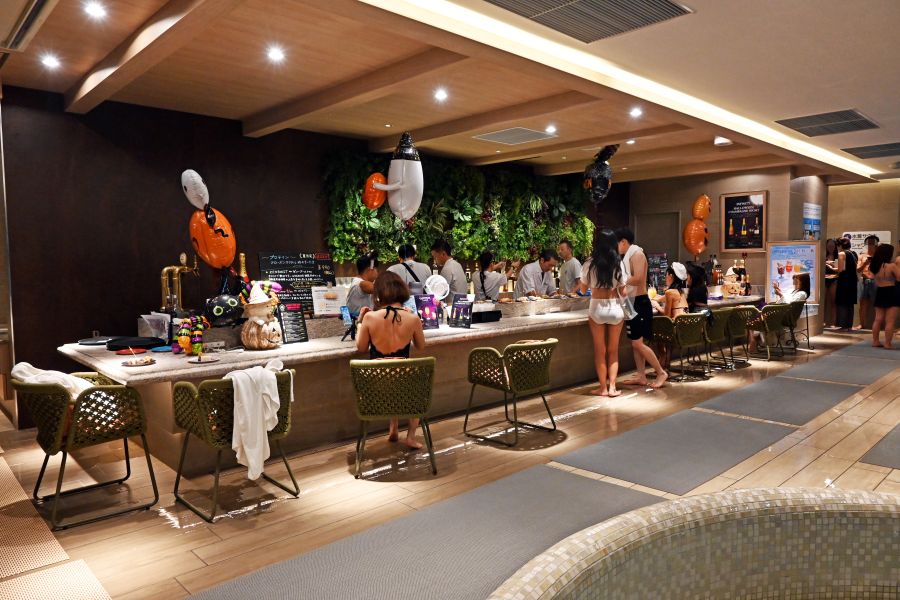 • 多くの来場者でにぎわう「うめきた温泉 蓮」のハロウィンパーティー