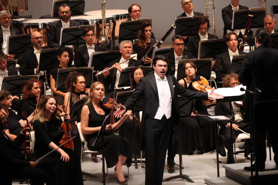 筆者は映像でオペラを見たことはありますが、恥ずかしながら生の舞台で見るのは初めての体験。話のあらすじは知っている演目が多いけれど、きちんと理解できるかどうか少し心配でしたが、最初に登場したルカ・ミケレッティのずっしりとした重厚感と深みのあるバリトンボイスを耳にした瞬間に、そんな不安は消え去り、優雅なオペラの世界へと誘われます。