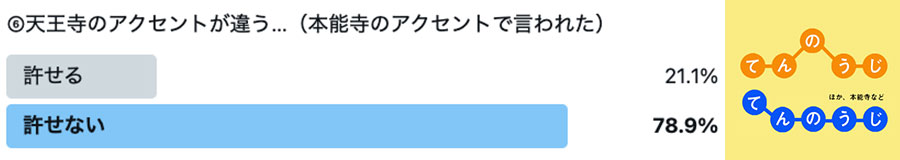 (6)天王寺のアクセントが違う…(本能寺のアクセントで言われた)許せる? 許せない?