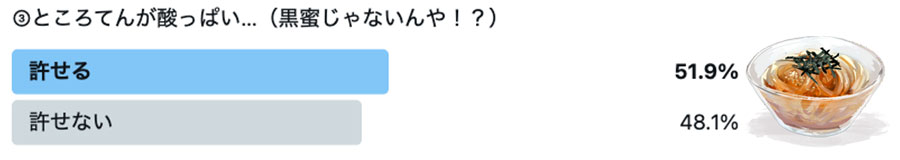 (3)ところてんが酸っぱい…(黒蜜じゃないんや!?) 許せる? 許せない?