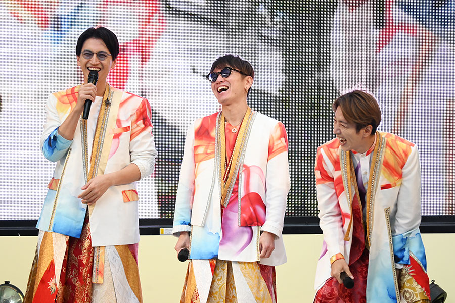 大倉忠義は「ラストに20年前からやらせてもらってる、御堂筋の歌を歌えたので嬉しかったです。途中で高校生の皆さんが一緒に参加してくださって、大阪の学生たちとコラボできてすごい嬉しいです」と、パフォーマンスの最後に披露した楽曲『大阪ロマネスク』や、高校生とコラボした『前向きスクリーム』の感想を語った。