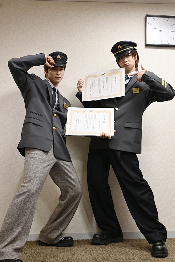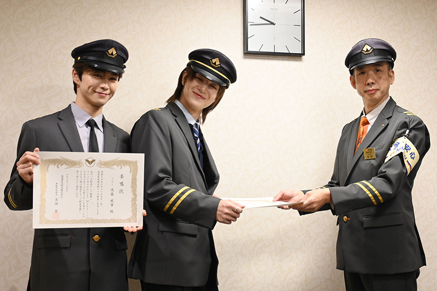 INI後藤威尊&佐野雄大、大阪・難波駅に登場…1日駅長に「せーの!」で仲良く敬礼