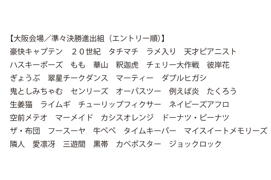 今年は過去最多となる1万1521組がエントリーした同グランプリ。3回戦は11月6日ですべて終了、準々決勝は11月17〜19日の3日間にわたって東京と大阪でおこなわれ、ファイナリストが決まる準決勝は12月4日、昨年同様、東京の「NEW PIER HALL」にて開催される。