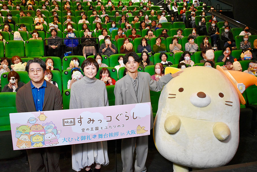 劇場版アニメ『映画 すみっコぐらし 空の王国とふたりのコ』が、10月31日より公開中。11月8日、映画館「なんばパークスシネマ」(大阪市浪速区)にて舞台挨拶がおこなわれ、ナレーションをつとめた井ノ原快彦と本上まなみ、脚本の角田貴志氏、ねこが登壇した。