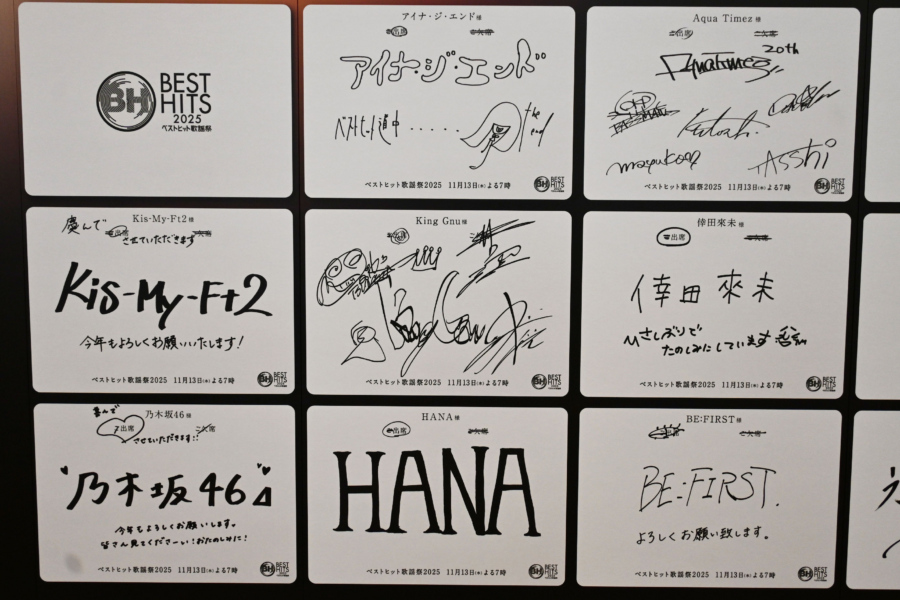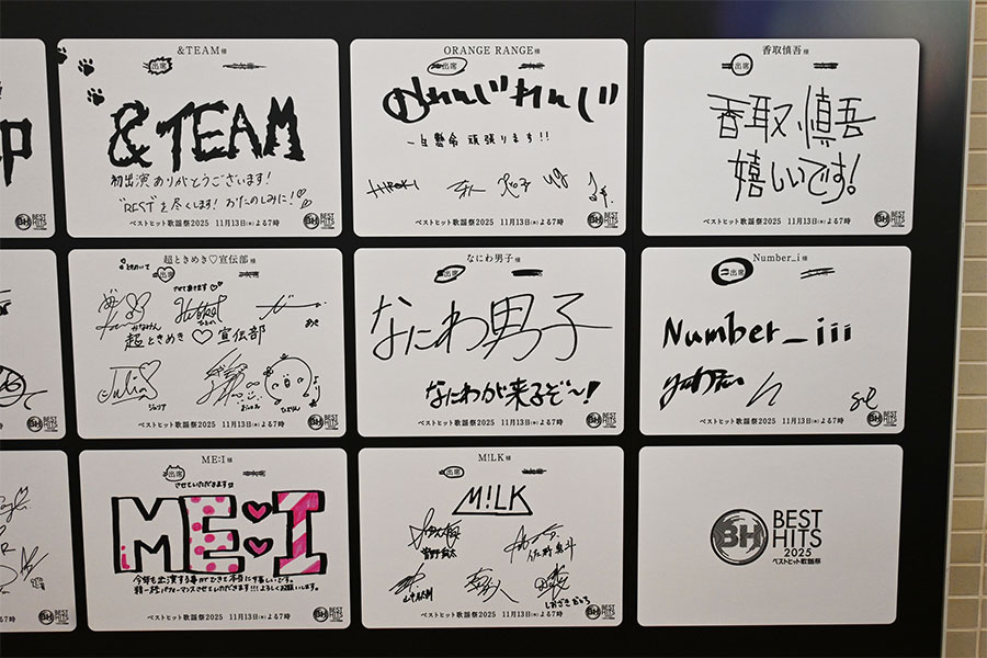 さっそくSNSでは「Number_iのパフォーマンスが楽しみです! "i"が3つもありますね!」「毎年のキスマイのお返事の仕方が丁寧で最高!」「JO1のサインええなぁ」「Aぇ!group目立つ!」「なにわ男子って改めていいネームやな!これほど分かりやすいものはないよねって思う」「郷ひろみさんの…流れるようなサイン…芸歴の長さ、重みを感じます!!」と、各ファンから反応が相次いでいる。