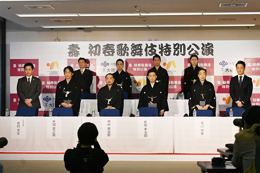 2026年1月に「大阪松竹座」(大阪市中央区)で開催される、上方(関西)歌舞伎の俳優たちが大挙出演する『壽 初春歌舞伎特別公演』の概要発表会見が11月10日、「大阪市役所」にておこなわれ、出演者ら同年5月に閉館する松竹座への思いを明かした。