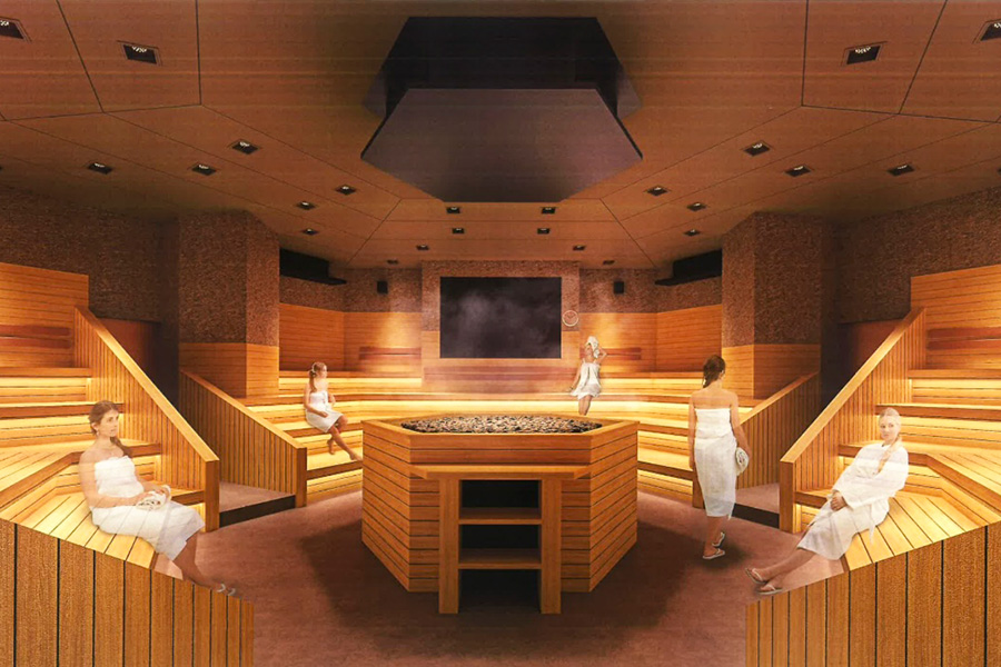 「スパワールド ホテル&リゾート」の同時に140名が入れるサウナシアターのイメージ(C)株式会社東急Re・デザイン