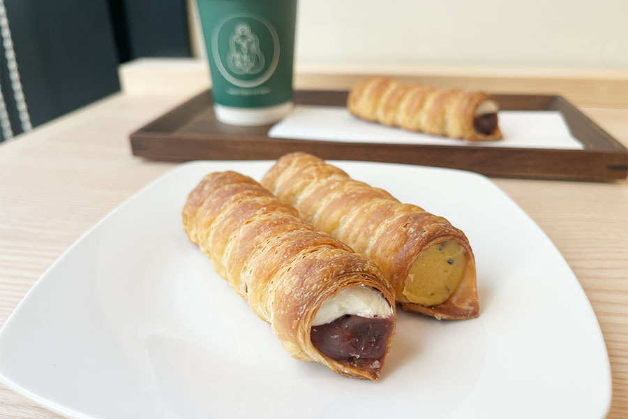テイクアウト販売では、オープンに合わせた新作「クッキーシュークリーム」(2個・800円、11月末までの販売)が同店限定で登場。フランボワーズとこしあんの2種のフレーバーがあり、カスタード&ホイップクリームは口当たりがよくライトに食べれるように開発されたという。