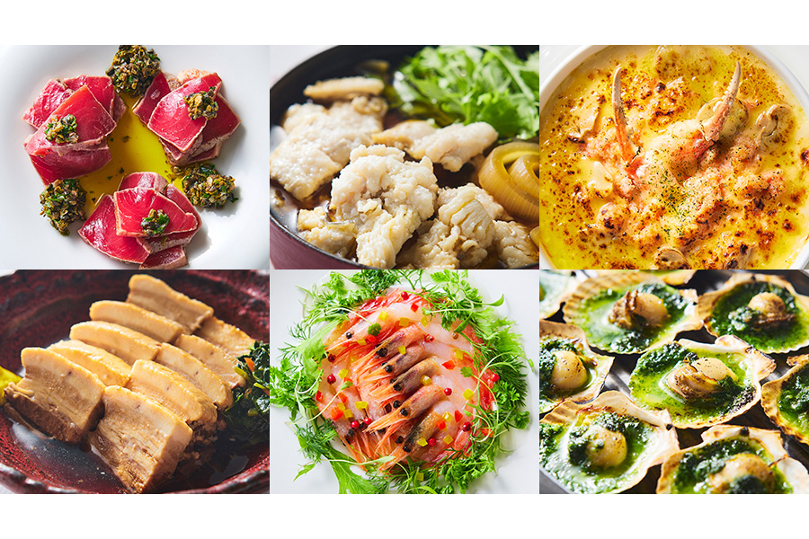北海道の「なまらうまいもん」を取り揃える。名物の海鮮を使った料理が種類豊富。カニ、ホタテ、鮭を、いなり寿司やアヒージョで食べられる。また、フレンチ仕立ての蝦夷鹿は、シェフが目の前で仕上げて提供する。約20種類のスイーツにも、北海道の美味を味わえる「北海道メロンロールケーキ」などのメニューが並ぶ。
