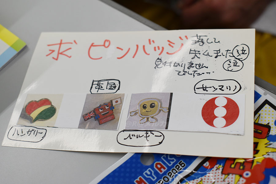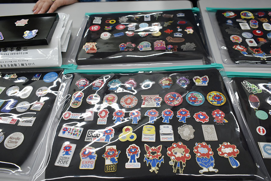 そんななか、やはり一番人気なのはピンバッジだ。公式キャラクター・ミャクミャクのピンバッジをはじめとし、各パビリオンのピンバッジ、藻類とハローキティがコラボした「藻キティ」シリーズなど実に多彩。参加者のひとりによると、グッズとして販売されていたアイテムより、配布されていたノベルティの方が入手するのが難しく、人気アイテムになりがちなのだとか。