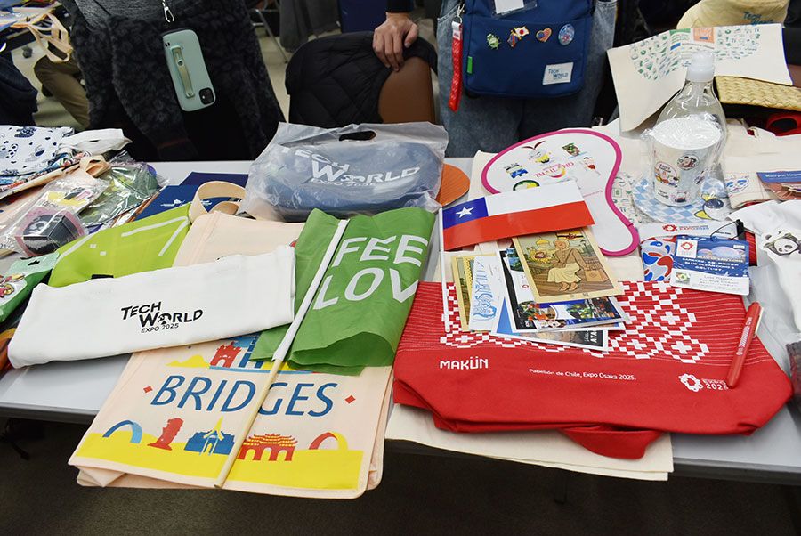 大阪府立中之島図書館でおこなわれた「万博グッズ交換会」の様子(11月29日・大阪市内)
