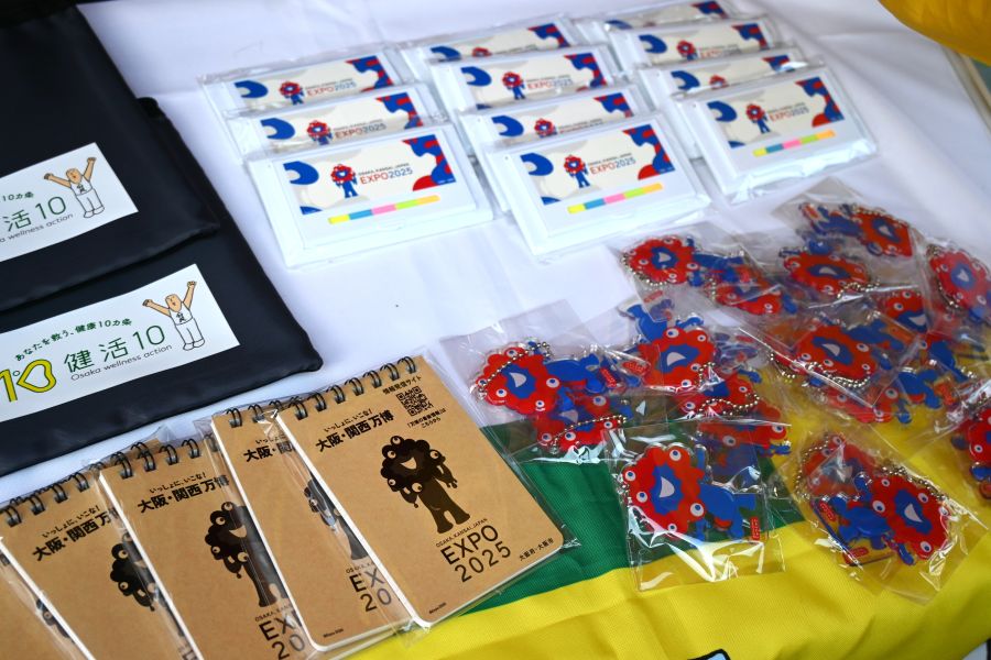 また、キッチンカーの裏には、ミャクミャクのアクリルキーホルダーなどが景品のガチャガチャがまわせる、大阪府の「健活10」のブース出展も。この週末は、各地でアフター万博イベントが開催されているが、難波でもプチ万博気分を味わえる。