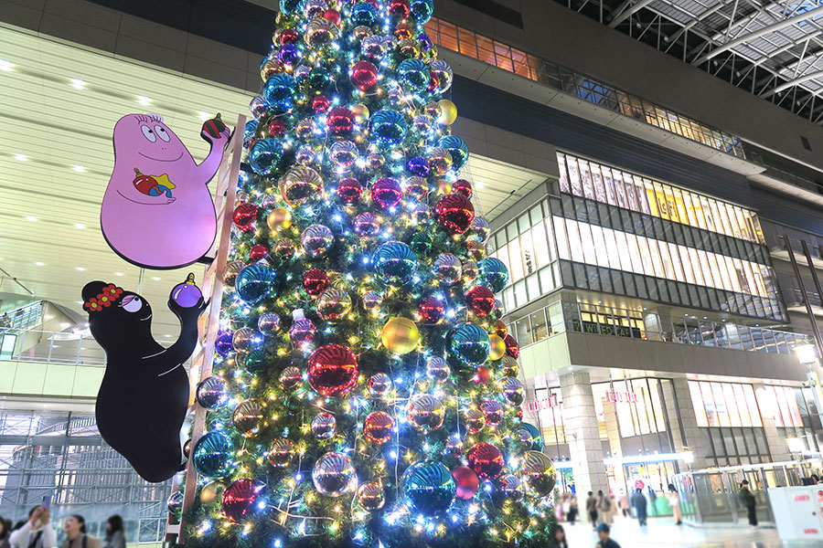 まだ準備中…? 大阪駅に「バーバパパツリー」出現、恒例イルミネーション開幕