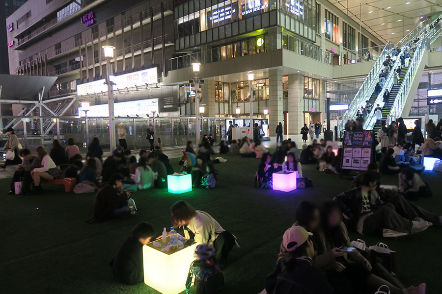 さらに同広場の芝生エリアには、光るベンチに変身したキャラクターたちが散りばめられ、ポップで楽しい雰囲気に。