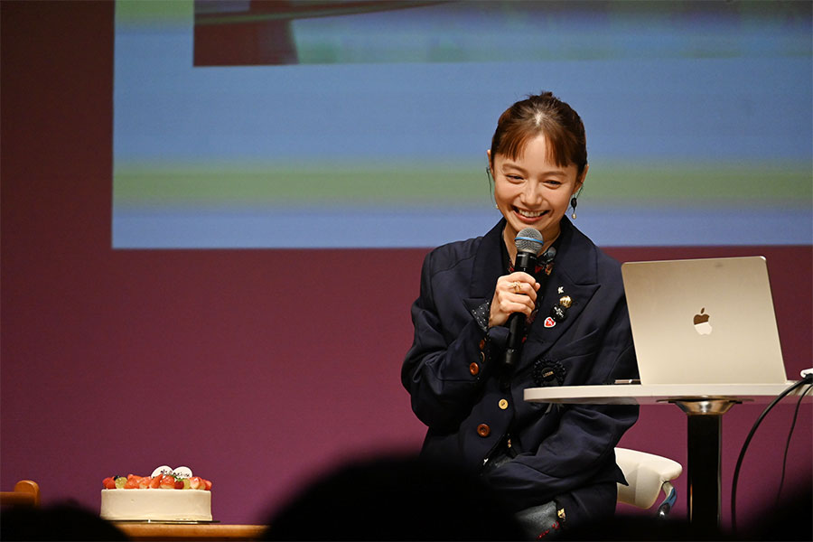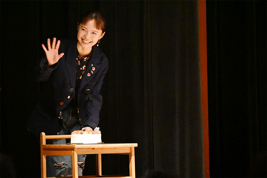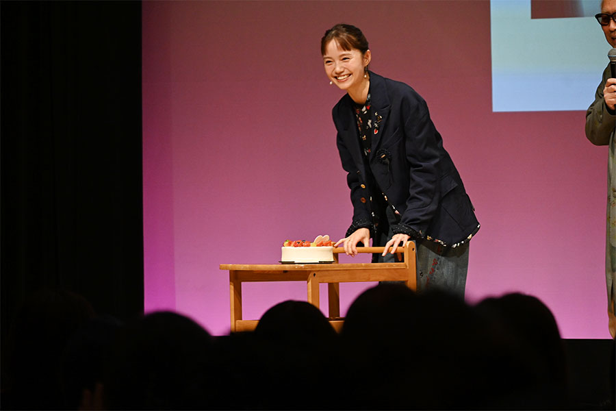 • サプライズのバースデーケーキに笑顔をみせる宮﨑あおい(11月18日 Lmaga.jp撮影)