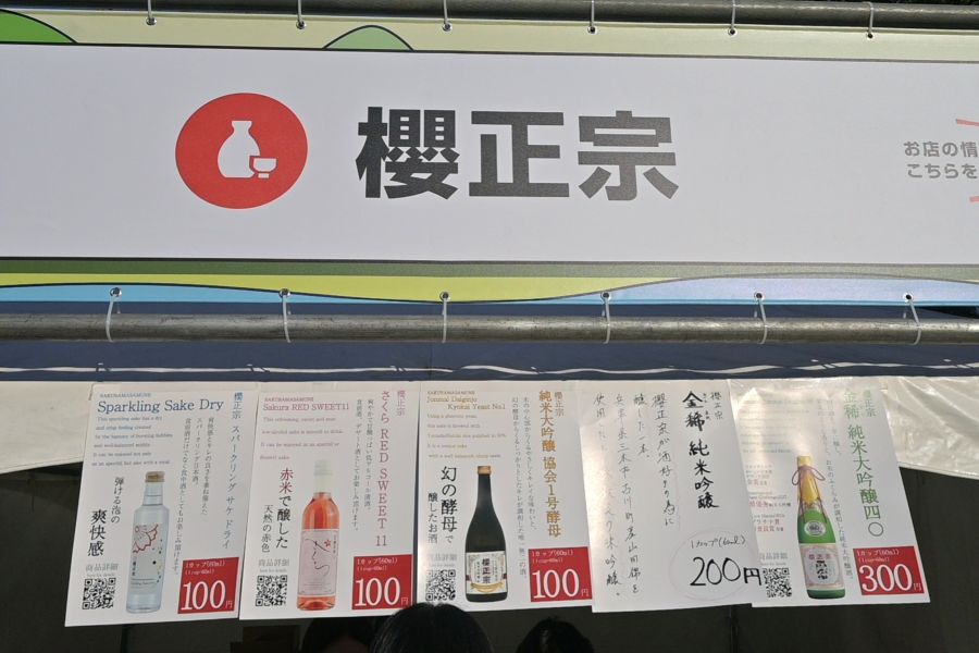 • 100円から試飲ができる「櫻正宗」。そのほかの酒蔵もリーズナブルにさまざまなお酒を展開(11月8日/東遊園地)
