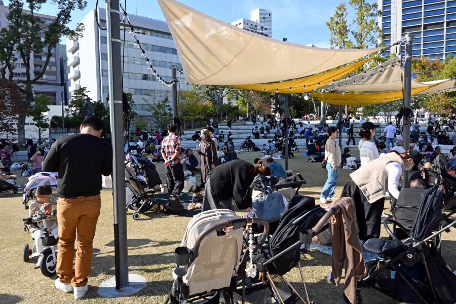• 子連れのファミリー層も多く、芝生スペースでくつろいでいた(11月8日/東遊園地)