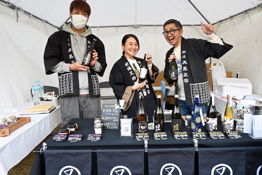• 「食いしん坊酒蔵」「安福又四郎商店」のみなさん。「わたしたちが食いしん坊だからなんですが、日本酒だけを飲むスタイルの試飲会などには出店しないんですが、食とのコラボレーションならぴったりだなと。イベントを楽しんでます」(11月8日/東遊園地)