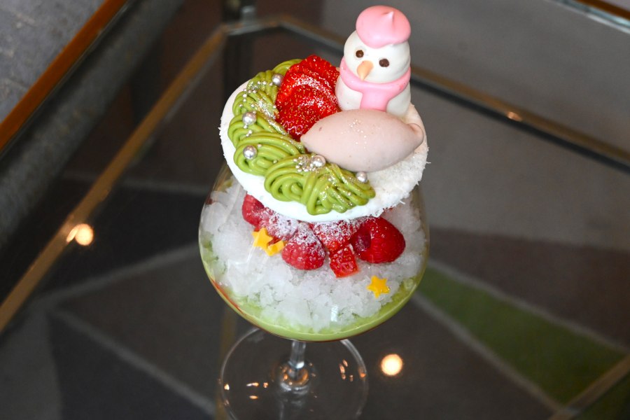 • サンタが鎮座するパフェ。上品で濃厚なピスタチオと酸味のあるベリー系スイーツの相性は抜群「スイスホテル南海大阪」