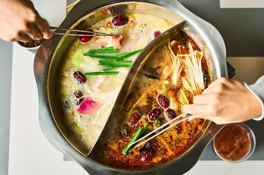 「薬膳火鍋」は、唐辛子や花椒(ホアジャオ)がたっぷり入った痺れる辛さが魅力の「麻辣スープ」と、鶏や豚の旨みが溶け出したまろやかで優しい「白湯(パイタン)スープ」を同時に楽しむことができる。また、韓国の国民的料理「サムギョプサル」は野菜のシャキシャキ感とお肉のジューシーさのどちらも堪能でき、加えて豚バラ肉は、プレーンに加えて3種類のフレーバーをスタンバイする。