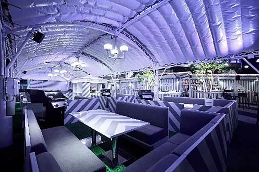 普段はBBQを楽しむお客が多い同店。今回はBBQスペースである「LUXURY LAND」のソファ席に暖房機能を設置し、そこで「薬膳火鍋」と「サムギョプサル」が登場する。DJの音楽が響くルーフトップで、熱々の火鍋とサムギョプサルの鉄板を囲むという珍しい体験ができる仕様になっている。