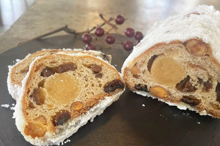 同催事はパンシェルジュ・榎友寿さんが全国各地から厳選したシュトーレンと全国の人気ベーカリーによる焼き立てパンが勢揃い。今回の目玉であるシュトーレンは、冬を告げるドイツの伝統菓子で、洋酒に漬け込んだドライフルーツやナッツが香るしっとりとした生地が特徴だ。現地ではクリスマスまでの3週間、少しずつ味わっていくという文化がある。