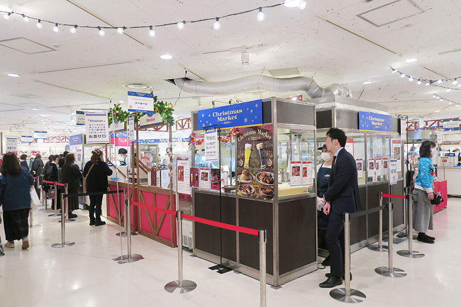 • 阪急うめだ本店『クリスマスマーケット2025』9階催場、実演販売をおこなうフードエリアの様子(11月26日・10時半頃)