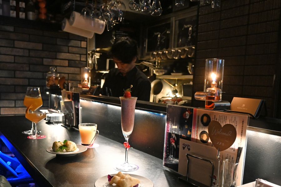 照明を落としたカウンターバーで、カクテルと同じように作られたノンアルコールドリンク「モクテル」が楽しめる、妊婦のための期間限定バー「ニンプバー」の予約がスタートした。お腹の子のために過ごす妊婦の気分転換や癒しになると好評で、今回が5回目の開催となる。
