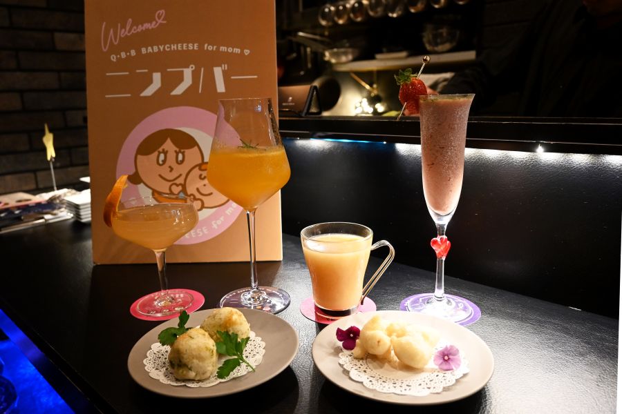 そんな妊婦さんに寄り添うプロジェクト「QBB ベビーチーズ for mom」を、「六甲バター」(神戸市中央区)が展開。妊婦やママにヒアリングを行い、妊婦向けのメニューの開発などのほか、2022年から「ニンプバー」を企画。今回は、三宮駅から徒歩3分の旬のフルーツや野菜を使用したモクテルが人気のモクテル専門店「MOCKTERIA」(神戸市中央区)で期間限定開催される。