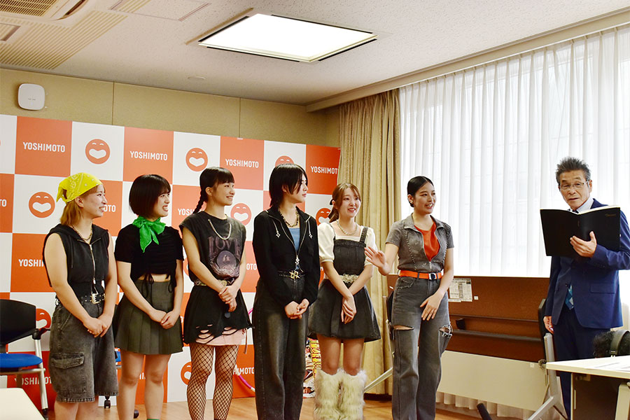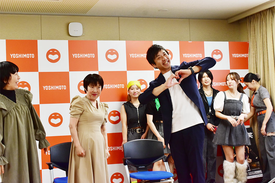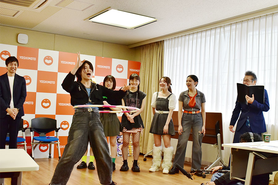 • 新喜劇の若手によるアイドルユニット「秘蔵っ子」のメンバーと間寛平GM(11月28日 Lmaga.jp撮影)