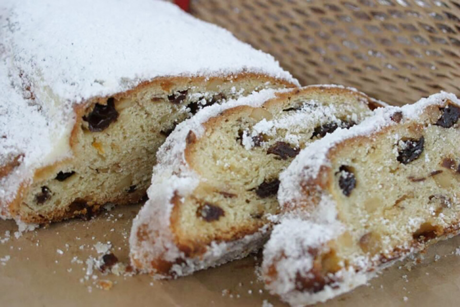 シュトーレンは、ドライフルーツやナッツ、さまざまなスパイスなどが生地に練り込まれており、表面には粉砂糖がまぶされているドイツの伝統パン菓子だ。クリスマスを待つ4週間のアドベント(待降節)の期間に少しずつスライスして食べる習慣がある。