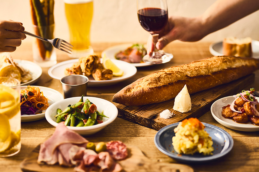 また大阪梅田店では、同店初の「パン飲み」も提案。ほうれん草やトマトのフレーバーのチャバタや総菜系など、日本酒やワインと合わせて楽しめるパンもそろう。