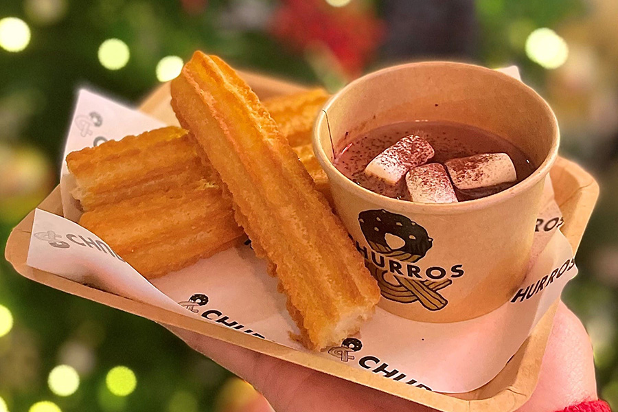 今回同公園で初の開催となるクリスマスマーケットでは、ホットワインやホットチョコレート、クリスマスチキンなどのメニューが並ぶ。