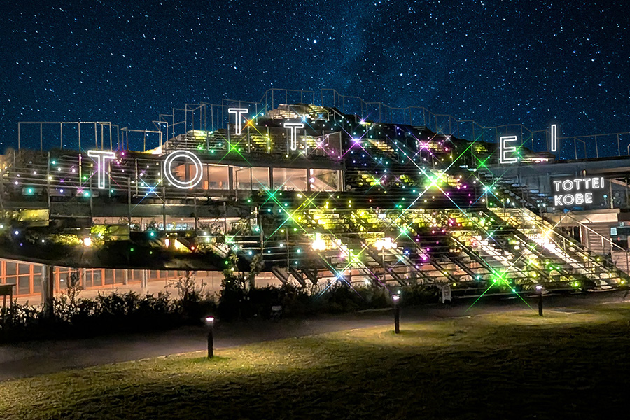 2025年4月に開業した神戸港の新港突堤にある多目的アリーナ「GLION ARENA KOBE(ジーライオン アリーナ コウベ)」に併設する、270度海に囲まれた公園「TOTTEI PARK」。