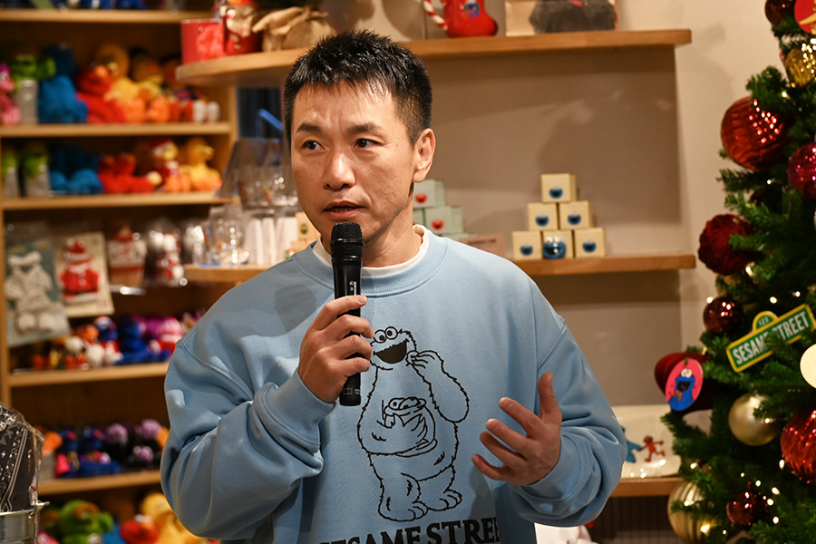 • 「セサミストリートマーケット」のオープニングイベントに登場したますだおかだ・増田。阪神タイガース愛を語る場面も(12月3日・阪神梅田本店)