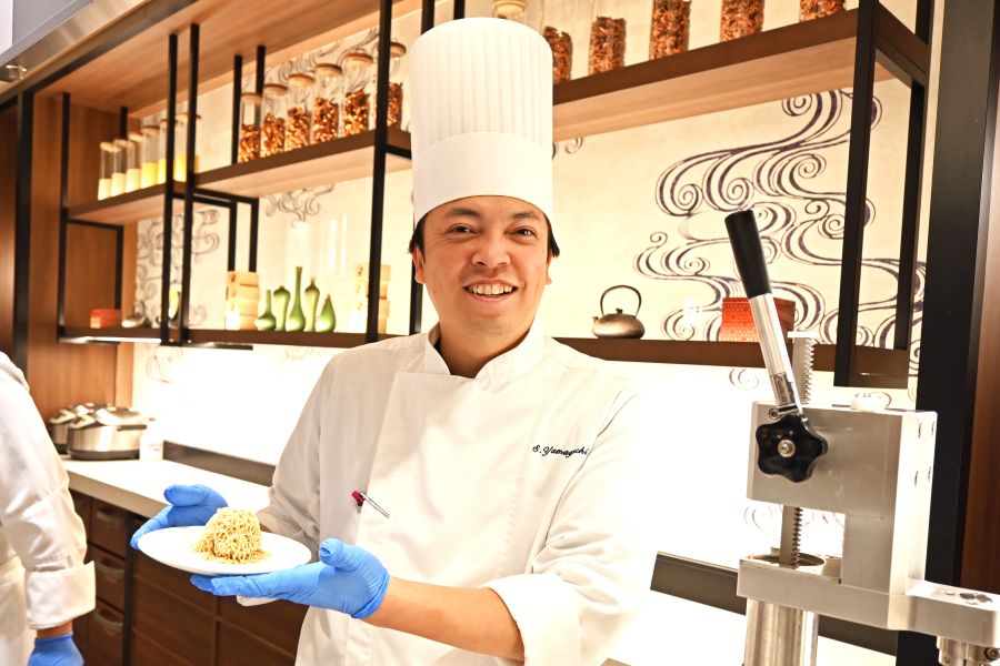 • 生絞りモンブランを手に…多彩なスイーツを手掛ける山口慎吾シェフ