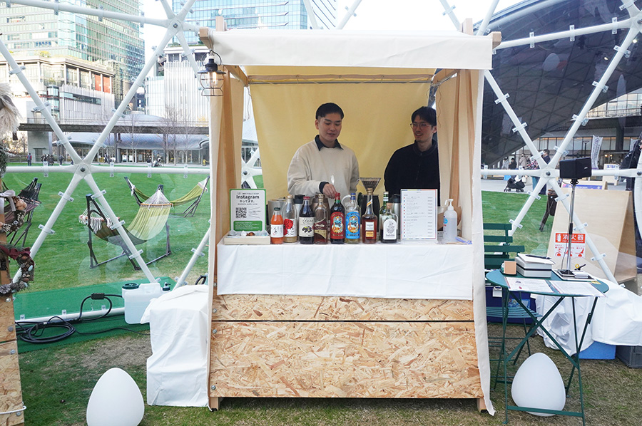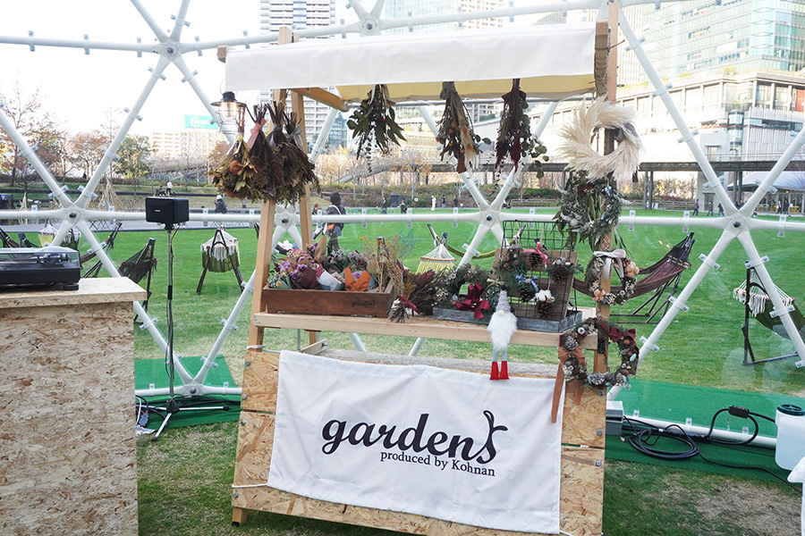 テントの中は誰でも無料で利用できるくつろぎの空間となっており、本・トランプ・ゲーム(全て無料)を利用したり、ドリンクやクリスマス雑貨、ディフューザーなどを販売する屋台ではショッピングを楽しんだり、ワークショップに参加したり・・・と、さまざまなコンテンツが用意されている。