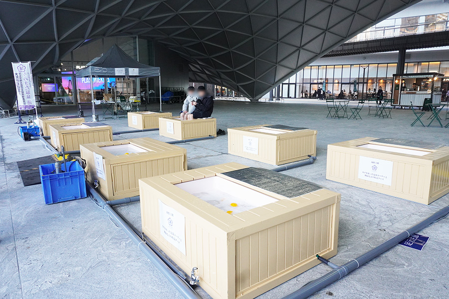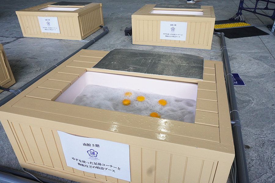また大屋根の「ロートハートスクエアうめきた」はイベントスペース「THE POP UP」として運営され、5日から13日までの期間は「グラングリーン大阪 南館」にある健康増進施設「うめきた温泉 蓮 Wellbeing Park」による、無料で体験できる足湯が登場。