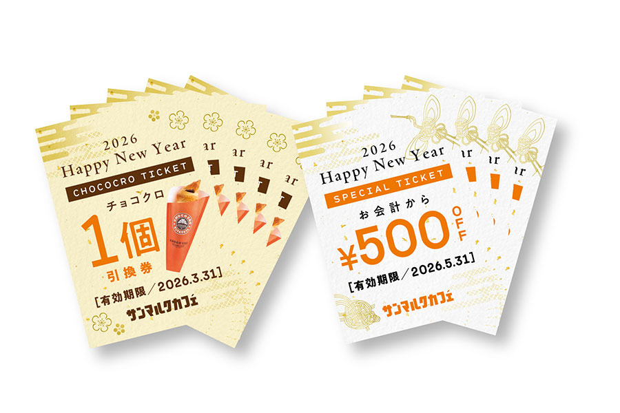 いずれも販売期間は2026年1月4日までの予定(状況により前後する可能性あり)。「スペシャルチケット」は、パン商品やセットなどサンマルクカフェの全商品に利用でき、有効期限は2026年5月31日まで。「チョコクロチケット」の有効期限は2026年3月31日まで。※全てのチケットは2025年12月31日~2026年1月4日は使用不可