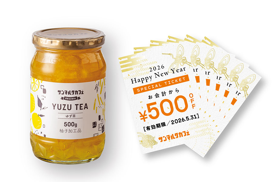 そのほか、チョコクロ5個に2000円相当のスペシャルチケットが付いた「チョコクロBOX福袋」(2000円)、チケットのみが入った「チョコクロチケット福袋」(2000円)、ゆず茶の瓶と3000円相当のスペシャルチケットを組み合わせた「オリジナルゆず茶福袋」(3000円)が販売される。