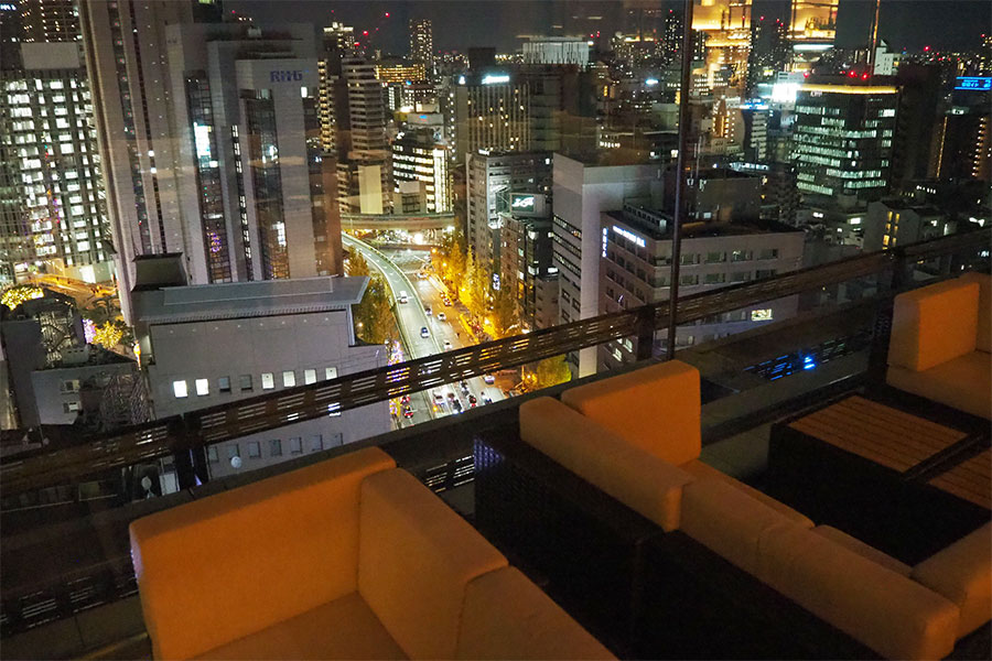 眼下には、12月末まで開催される御堂筋イルミネーションが光り輝く(Lmaga.jp撮影)