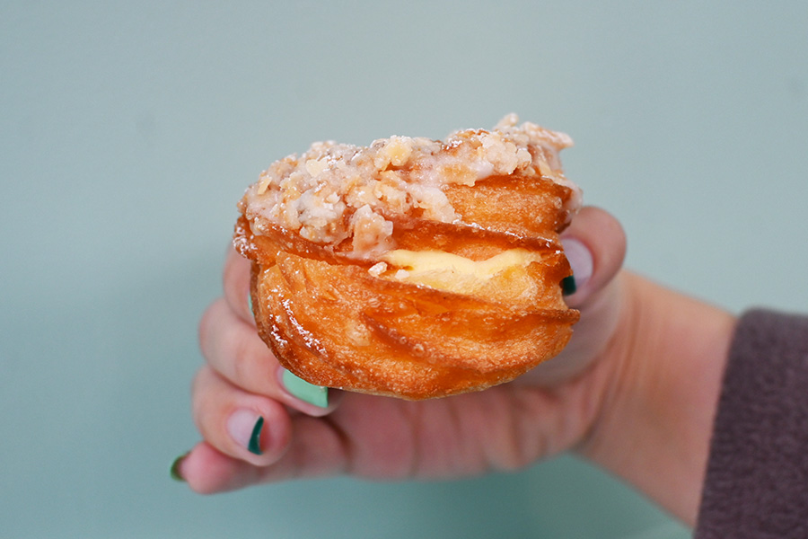 また、フレンチクルーラー特有のねじったフォルムにくわえ、手のひら大の小ぶりなサイズ感がなんともかわいらしい。そして見た目からざくっと硬めの食感なのかと思いきや、「ふわっと優しい」食べ応えだ。サイズ感と軽やかな食感も相まって、食べ比べや全種コンプリートも楽しめそうだと感じた。