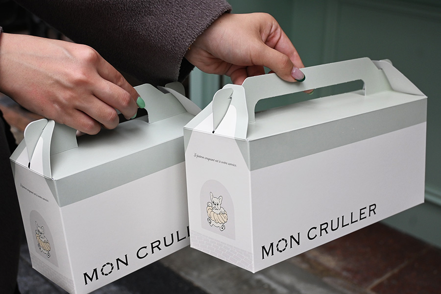 また、「フレンチ」にちなみフレンチブルドッグマークがキュートな手提げボックスや包み紙は、お土産としても活躍しそう。実際に手土産需要も高いそうで、取材中にも「知人が気になっていたので買いに来ました」という男性客が。ドーナツは売り切れ次第終了、夕方には店じまいをすることもあるので気になる方はお早めに。