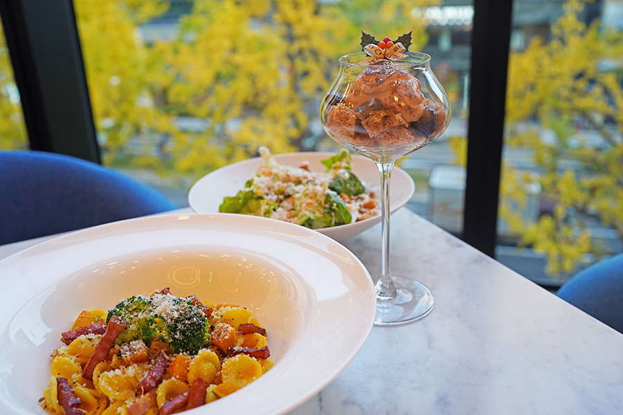 「ブーランジェリーランチ」は、W階「Oh.lala・・・(オーララ)」にて、12時〜15時(ラストオーダー14時)まで提供。平日限定の「パスタコース」は3800円。詳細は公式サイトにて。