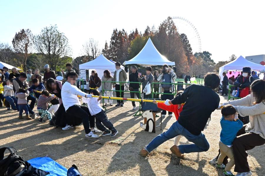ほかに、「綱引き」や「玉入れ」もおこなわれ、どの回も大盛り上がり。こちらでも気軽に参加しながら、次第に「ガチ」になっていく大人たちの姿が…。見守る人たちふくめ、笑顔あふれるあたたかい空間だった。