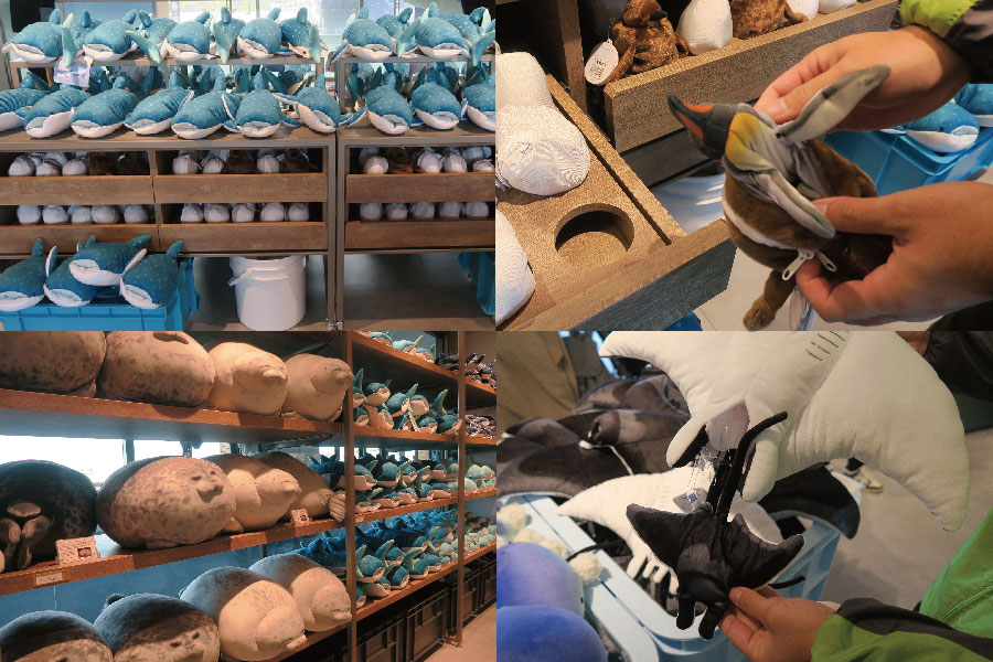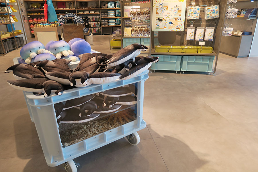 • 「海遊館オフィシャルショップ」で人気のぬいぐるみ。飼育員が監修し、本物の生きものを忠実に再現している(12月18日・大阪市港区)